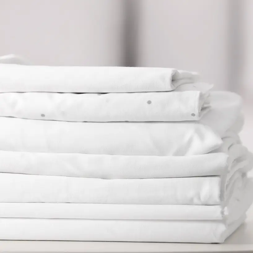 réalisée par l’atelier couture de l’ESAT Utopi à Dol-de-Bretagne, à partir de draps collectés et réemployés.